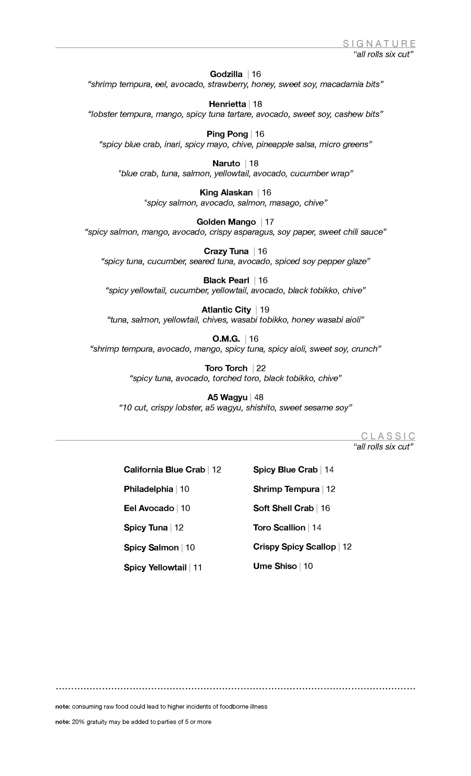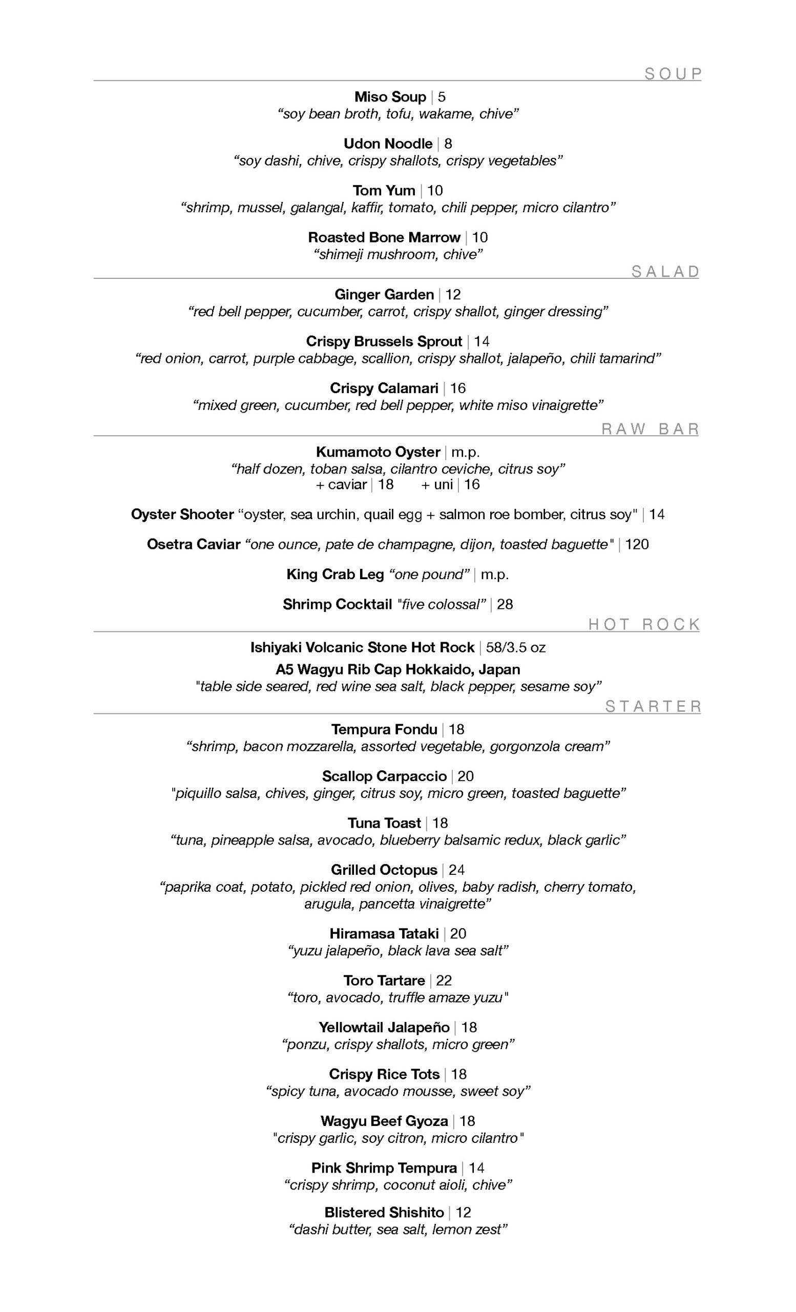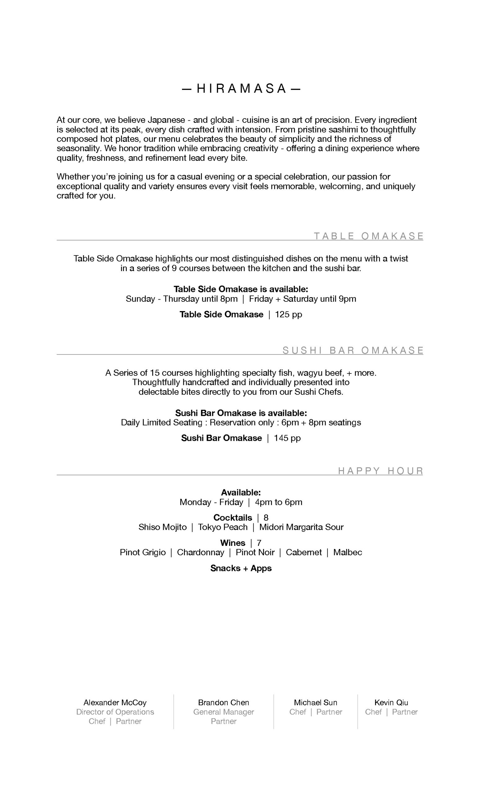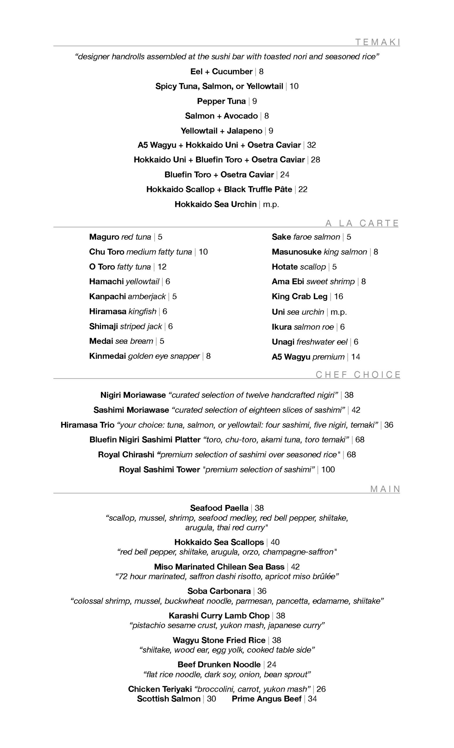 Explore our exquisite dine-in menu, where every dish is a blend of tradition, artistry, and the freshest ingredients. Indulge in the true essence of Japanese cuisine at Hiramasa.